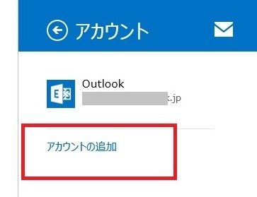 操作5: 表示され画面から、「アカウントの追加」をクリック、赤枠