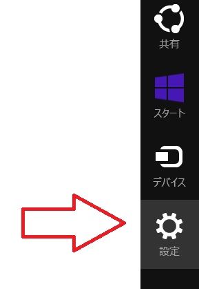画面の右下からチャーム画面の「設定」をクリックします