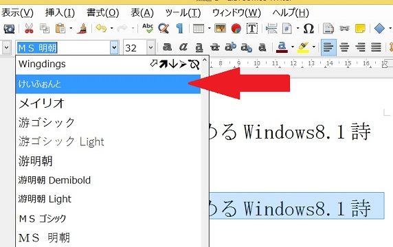 「けいふぉんと」を選択します。赤矢印