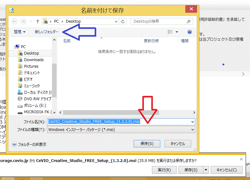 今この画面だとデスクトップに新フォルダーができてしまいますね。、
