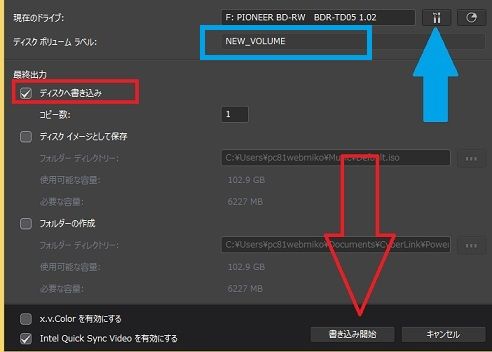 ●そして、BDディスクに書き込むので、一番上のチェックを入れます。