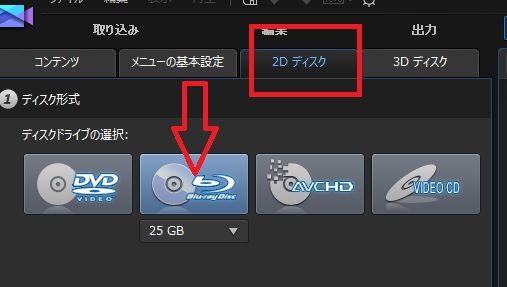 操作1 プレビュー画面を閉じたら、上のメニューから、「2Dディスク」を
